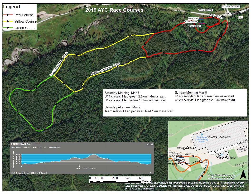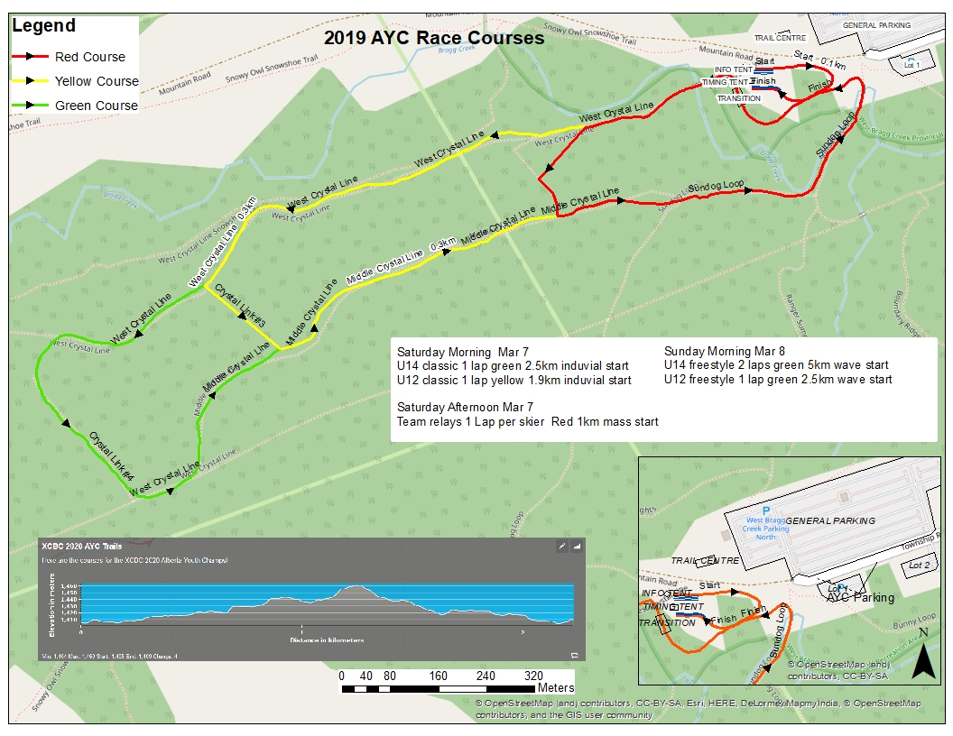 Event site details – West Bragg Creek Ski Trails are located entirely within Kananaskis Country, 8 km west of the Hamlet of Bragg Creek, AB. Base elevation of trails is 1450m; high point on Stairway to Heaven race course is 1480 m. Average snowfall – 50-100 cm. Average ski season – beginning December to mid-March. The trails are the closest Kananaskis Country trails to Calgary and are heavily used by locals and recreational skiers from the greater Calgary area. It is the only greater Calgary area ski area that permits dogs on the ski trails. The trails were designed in the early 1980s by Don Gardner primarily as race trails and are the same vintage as Peter Lougheed and Ribbon Creek trail systems. Course maps will be posted on www.xcbraggcreek.ca